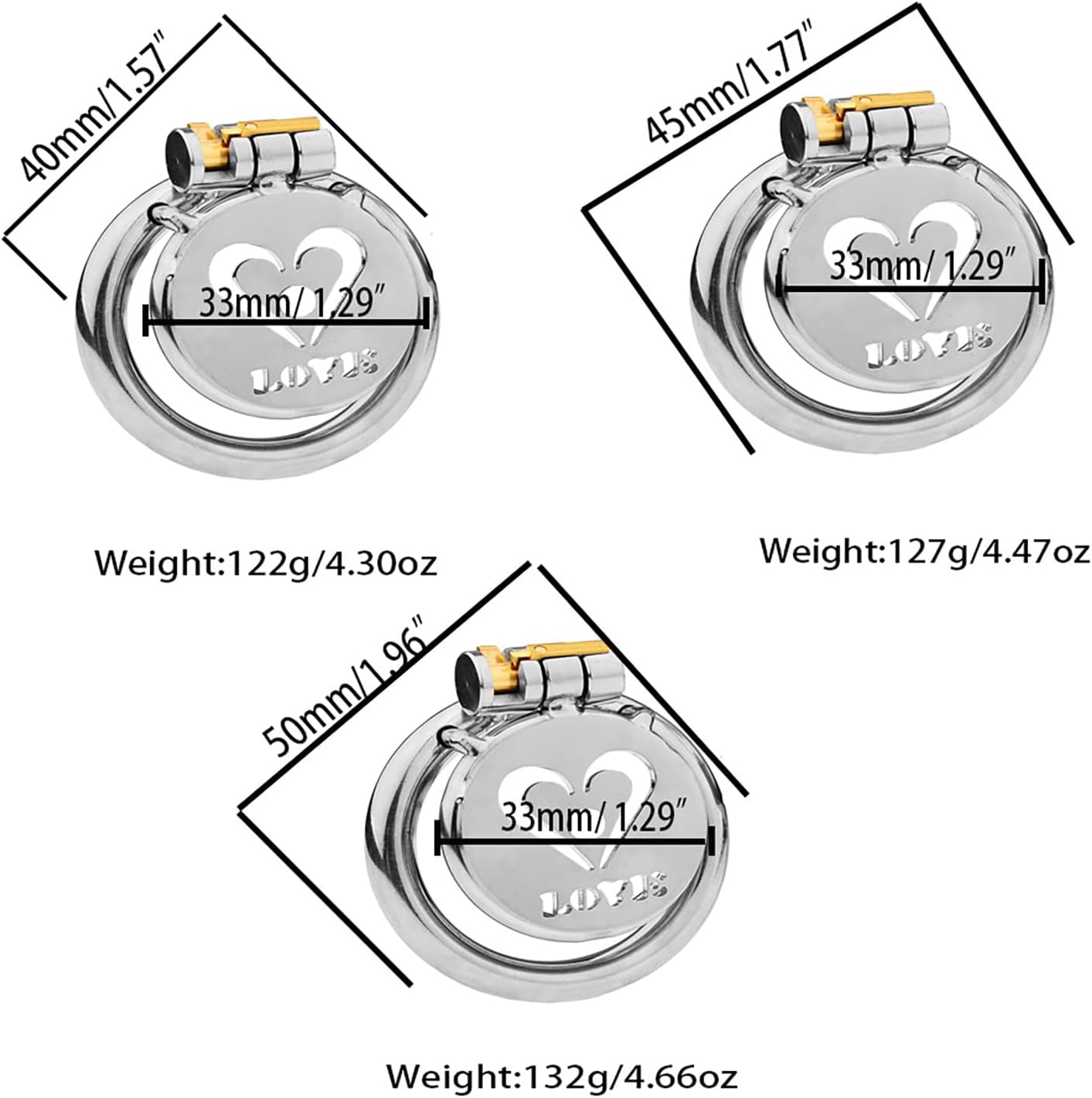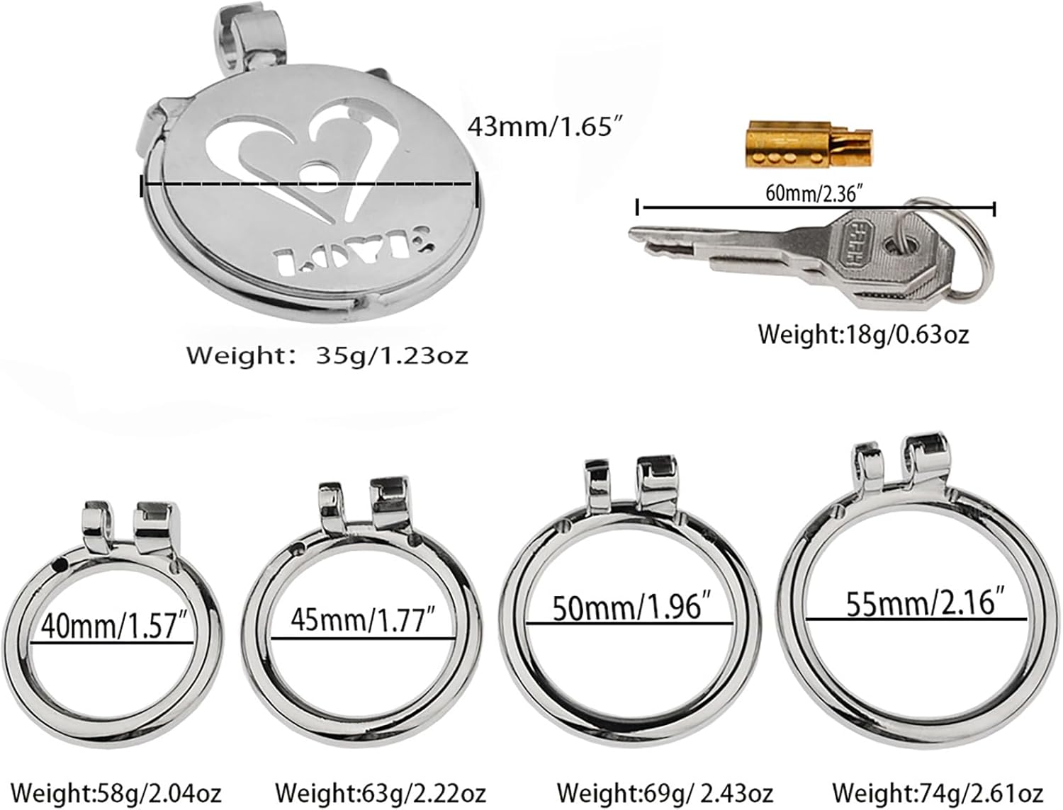 40mm/1.57in ,45mm/1.77in ,50mm/1.96in ,55mm/2.16in |