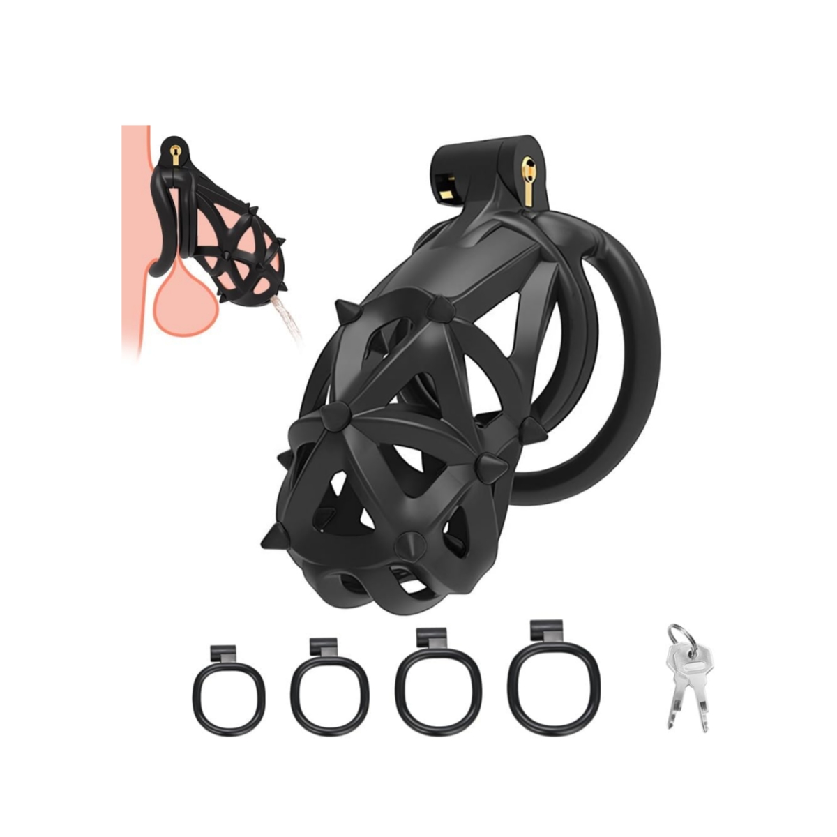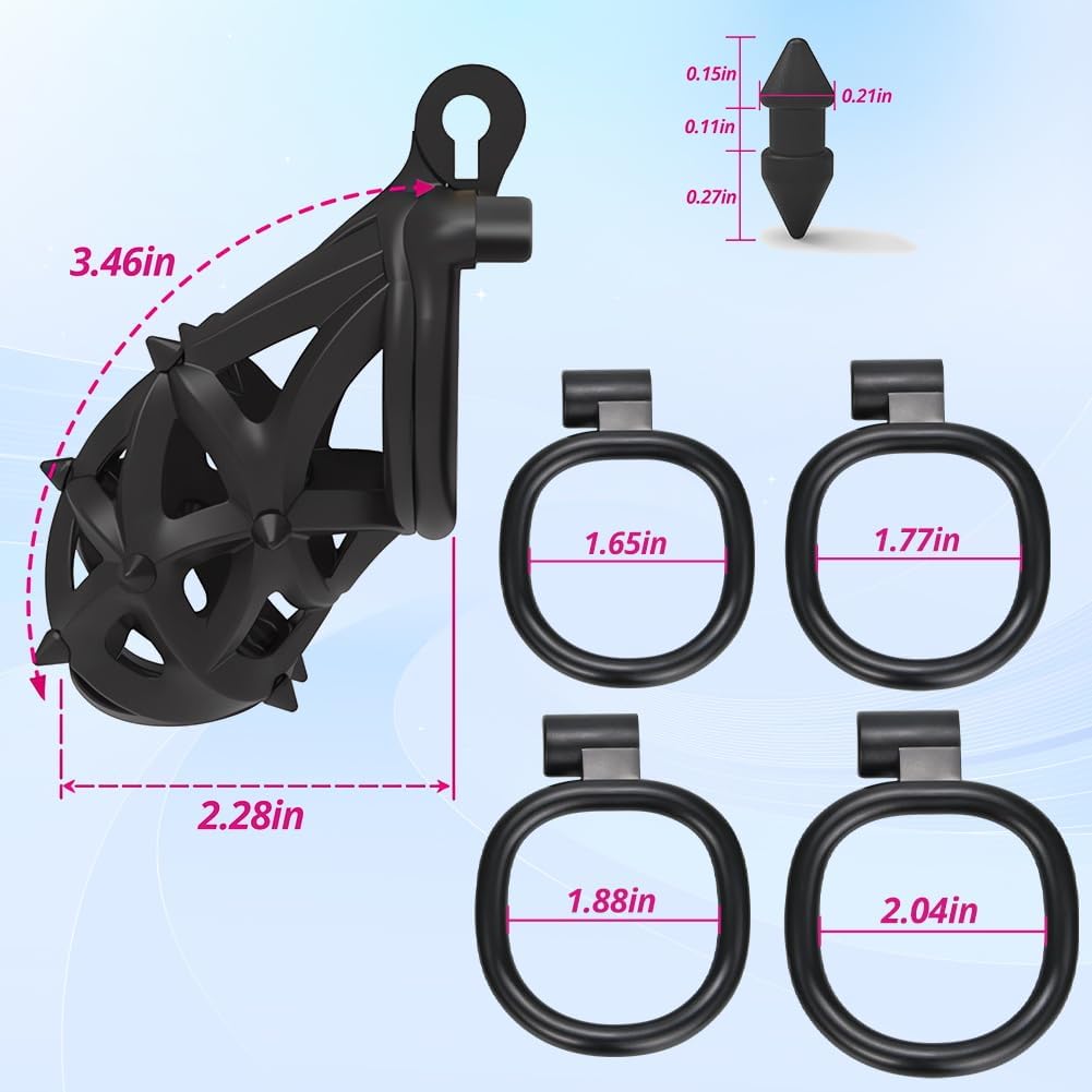 Be the first to review “Male Chastity Device Cock Cage Tease Resin Chastity Locked Penis Cage with Removable Soft Silicone Spikes 4 Different Size Rings for Penis Exercise Romi Long”